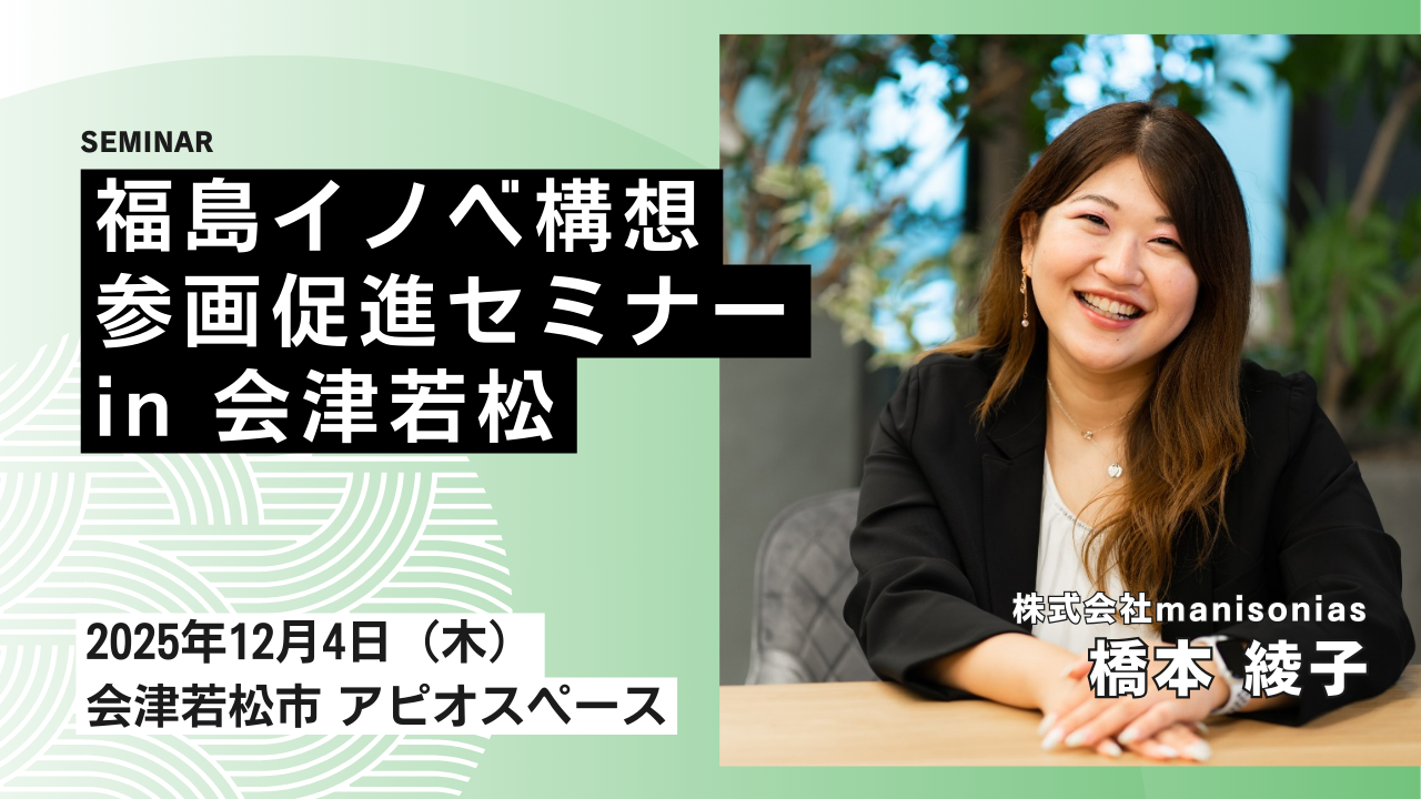 「福島イノベ構想 参画促進セミナー in 会津若松」に登壇いたします。